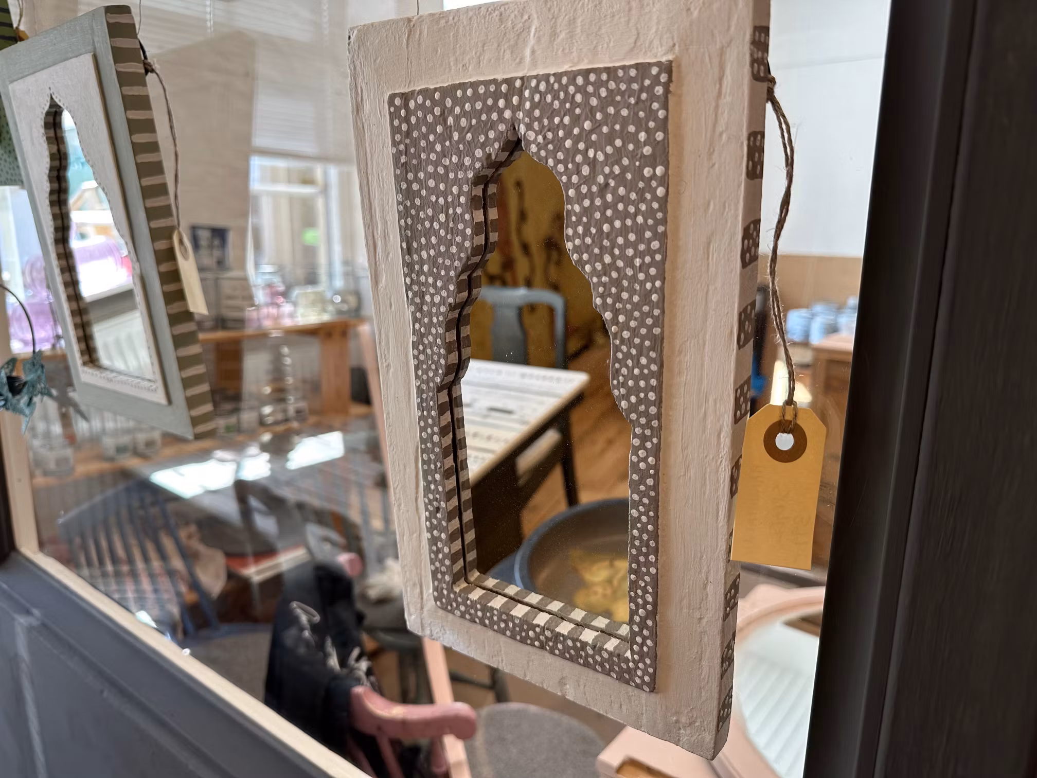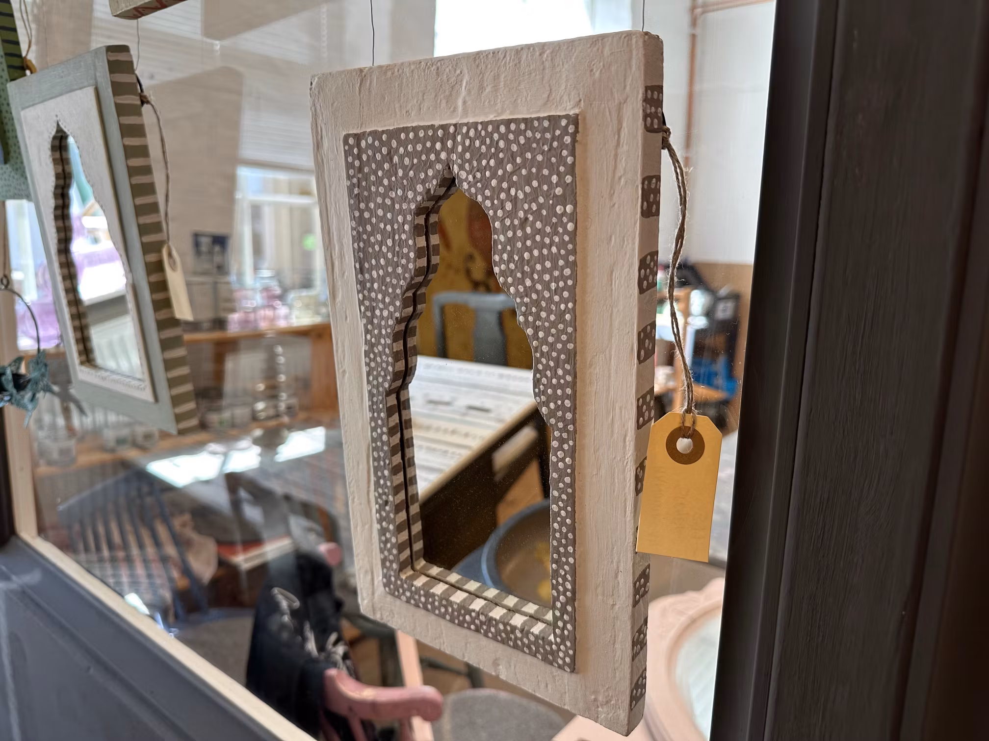 Spegel med handmålade mönster.
