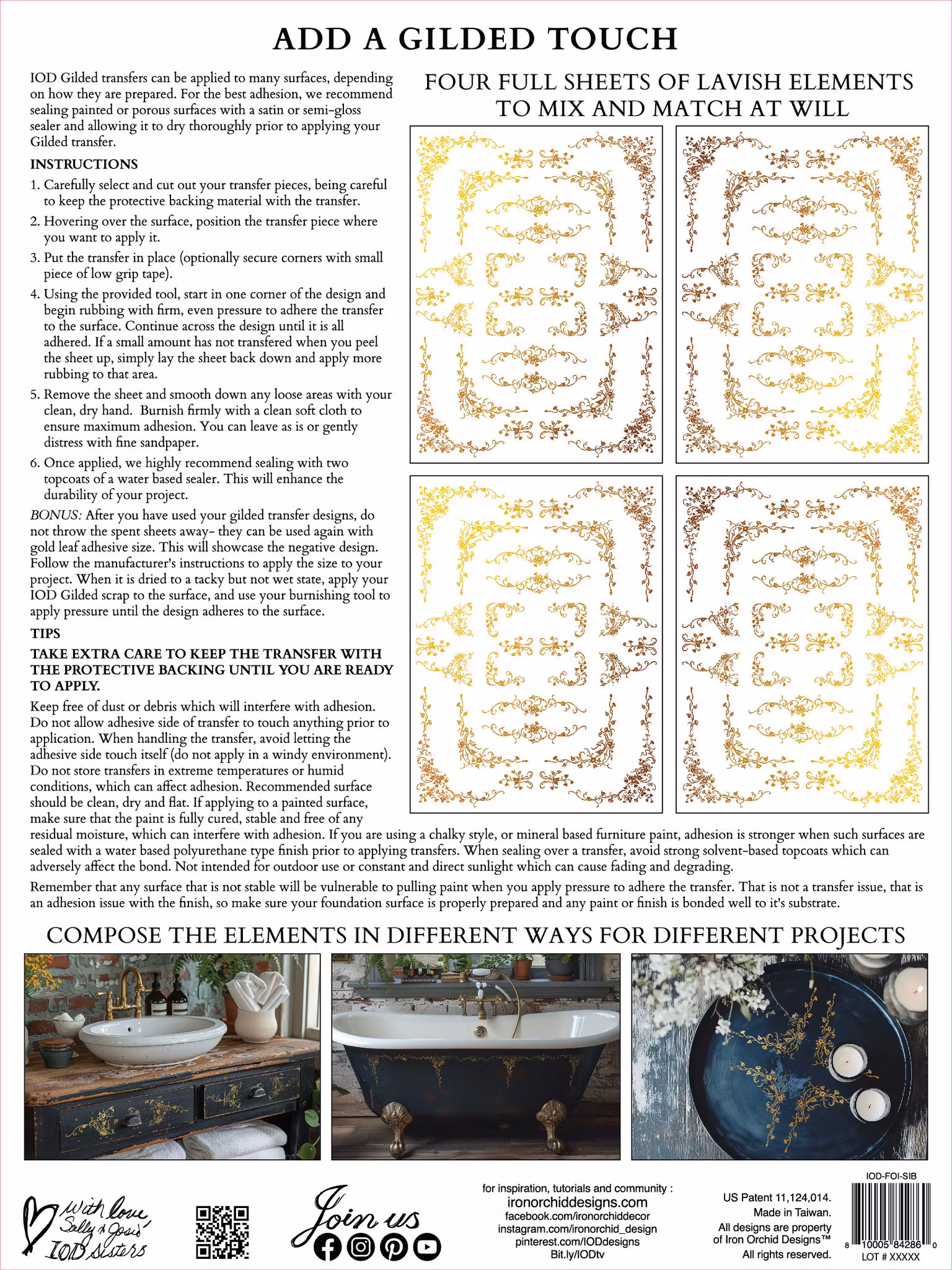 IOD Transfers är tryckkänsliga bilder som gnuggas på olika ytor t.ex. målade möbler. Med lite instruktion är de lätta att använda och gör dina projekt omedelbart vackra.