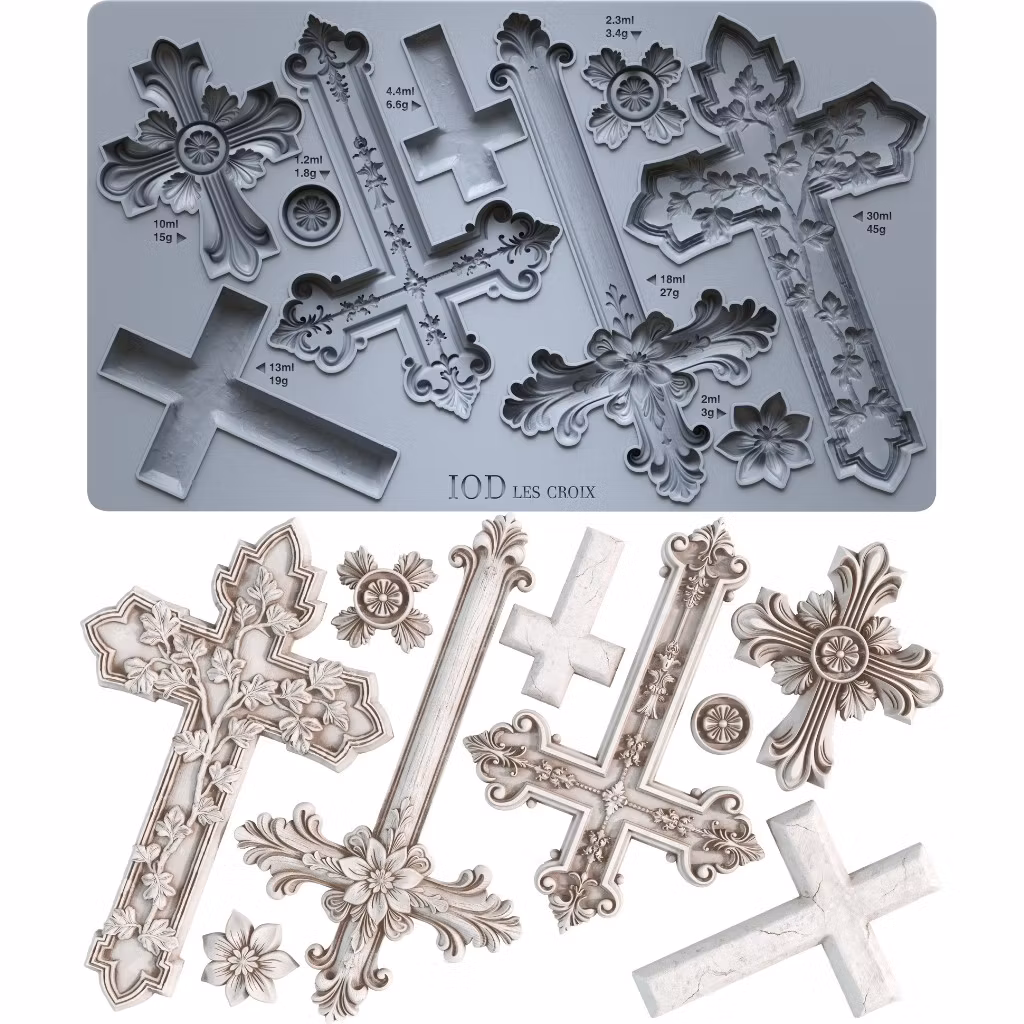 IOD Moulds är de vackraste och mest detaljerade som finns på marknaden. De görs med matsäkra material (använd inte samma form till mat som till hantverk) och de kan användas för att forma bakade delikatesser, möbler, tvål, smycken och mycket mer. Du kan använda IOD Moulds till väldigt många material.