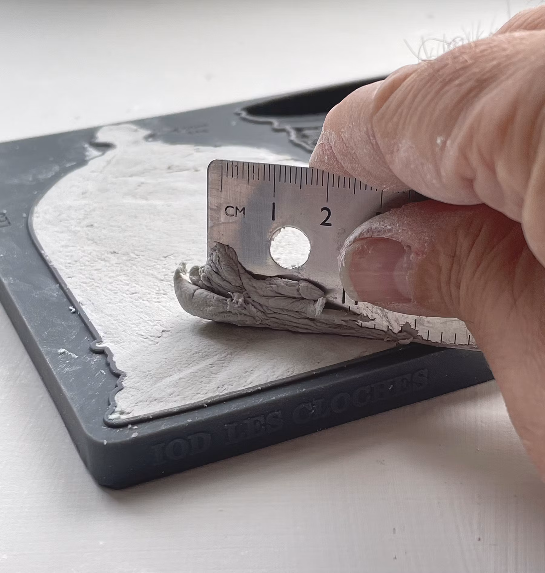 IOD Paper Clay är ett lufttorkande material och en av IOD:s favoriter. Som de flesta sorters lufttorkande lera förekommer en viss krympning, deformering och krackelering, det är naturligt. IOD gillar detta när de ska göra skavda, slipade och vintage liknande jobb. De tar ur leran ur formen när den fortfarande är fuktig och fäster den mot ytan med lämpligt lim så att den formar sig fint. Du kan använda tejp för att den ska sitta kvar medans den torkar.