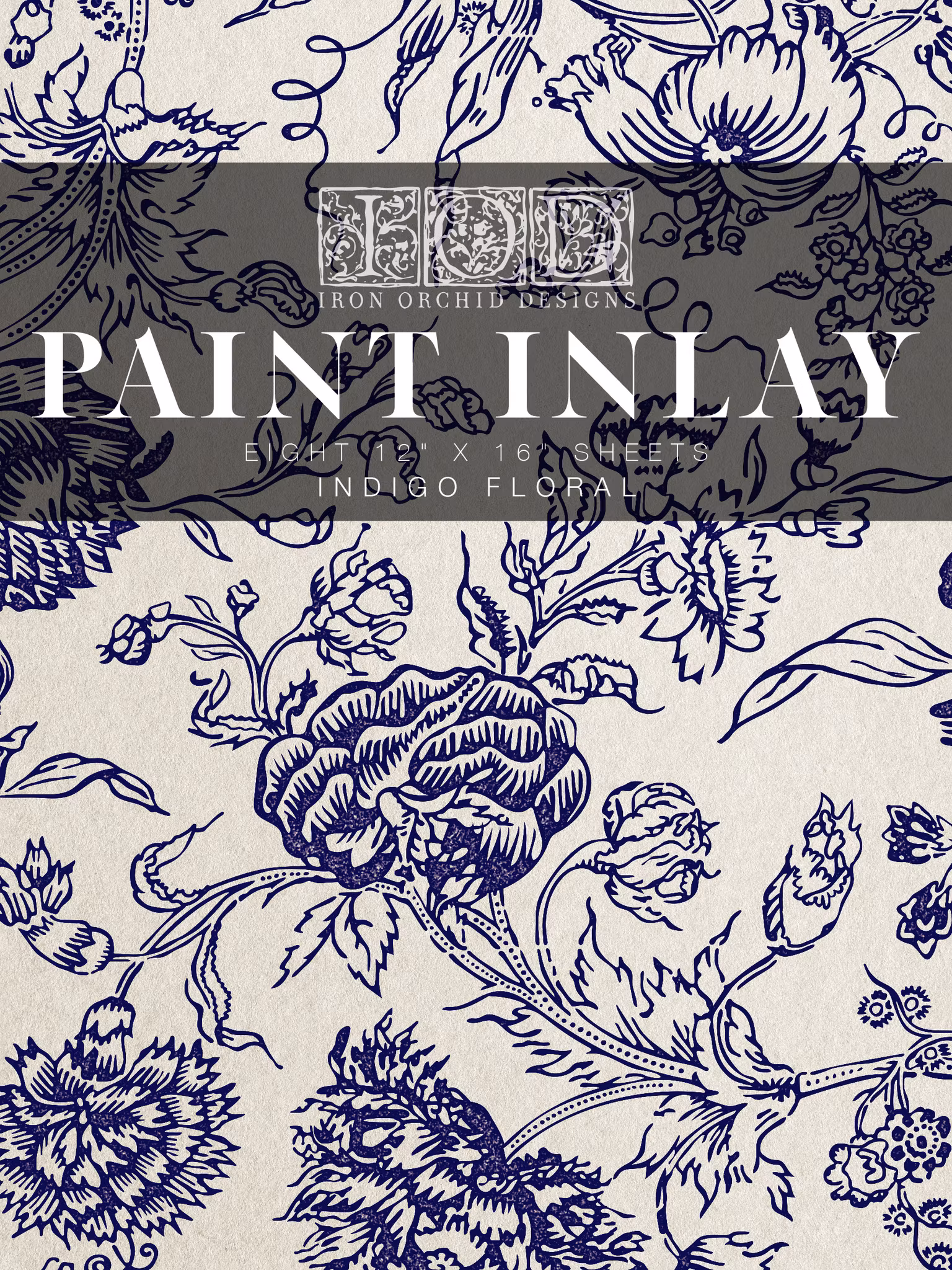 IOD Paint Inlay Indigo Floral innehåller 8 blad.Inspirerad av det sammanflätade, slingrande blommönster som funnits på ett bomullsöverkast från 1780 i Indien. B