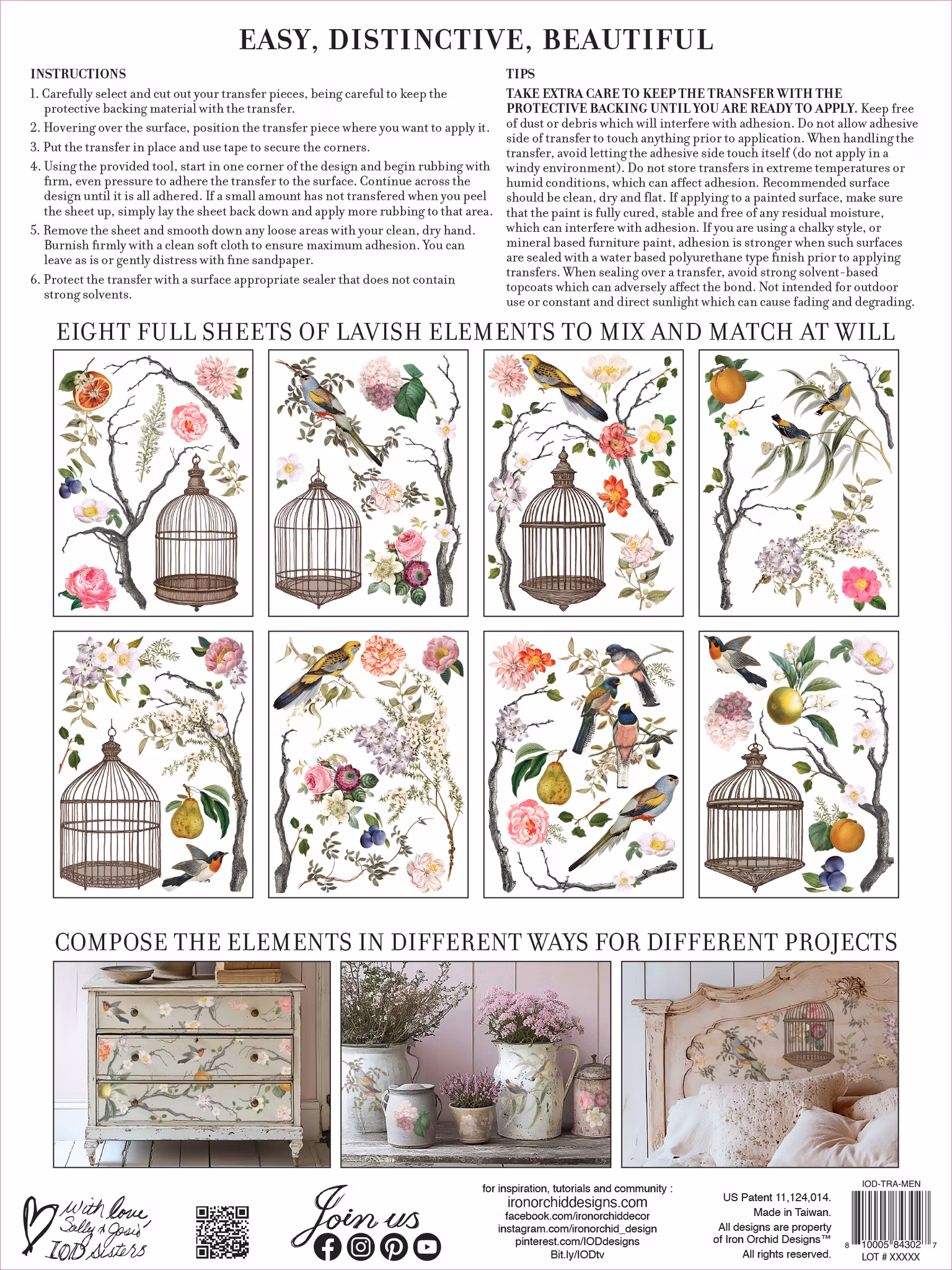 IOD Transfers är tryckkänsliga bilder som gnuggas på olika ytor t.ex. målade möbler. Med lite instruktion är de lätta att använda och gör dina projekt omedelbart vackra.