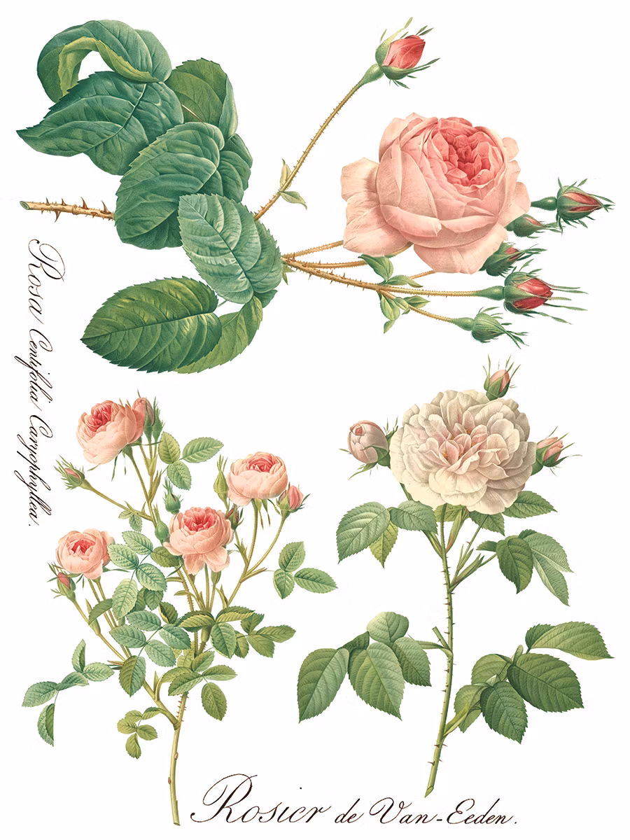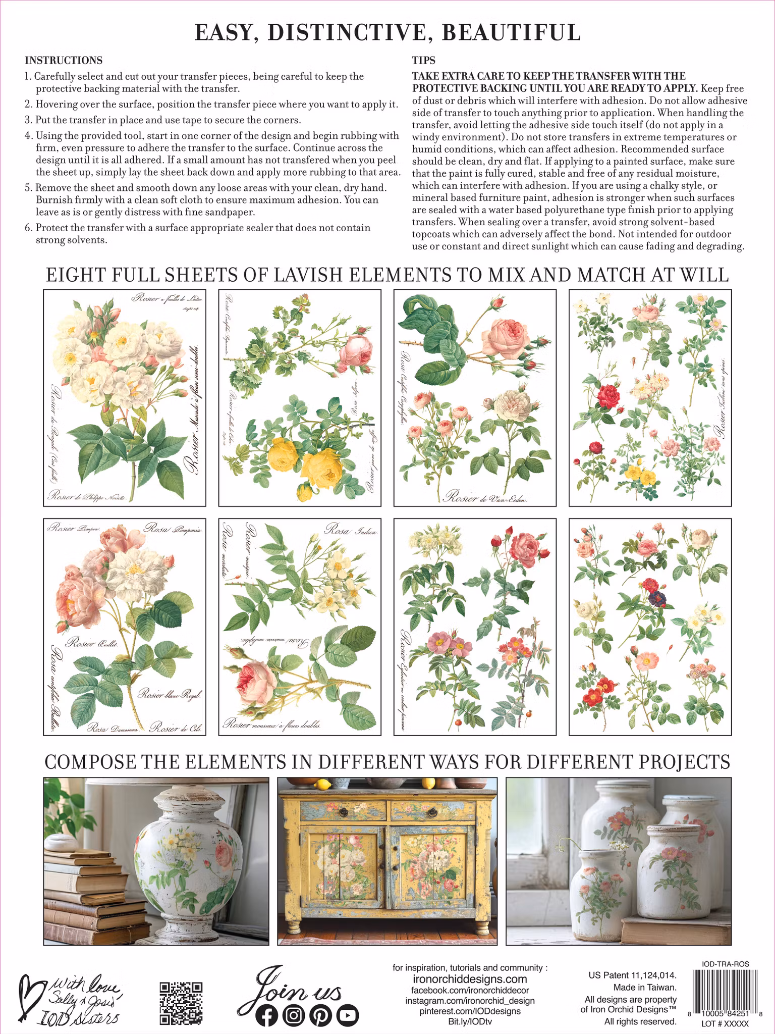 Enkelt, Karaktäristiskt och VackertRose Botanical innehåller 8 blad som är ca 30,5 x 40,6 cm.Du kan använda alla åtta bladen sömlöst eller du kan använda delar.